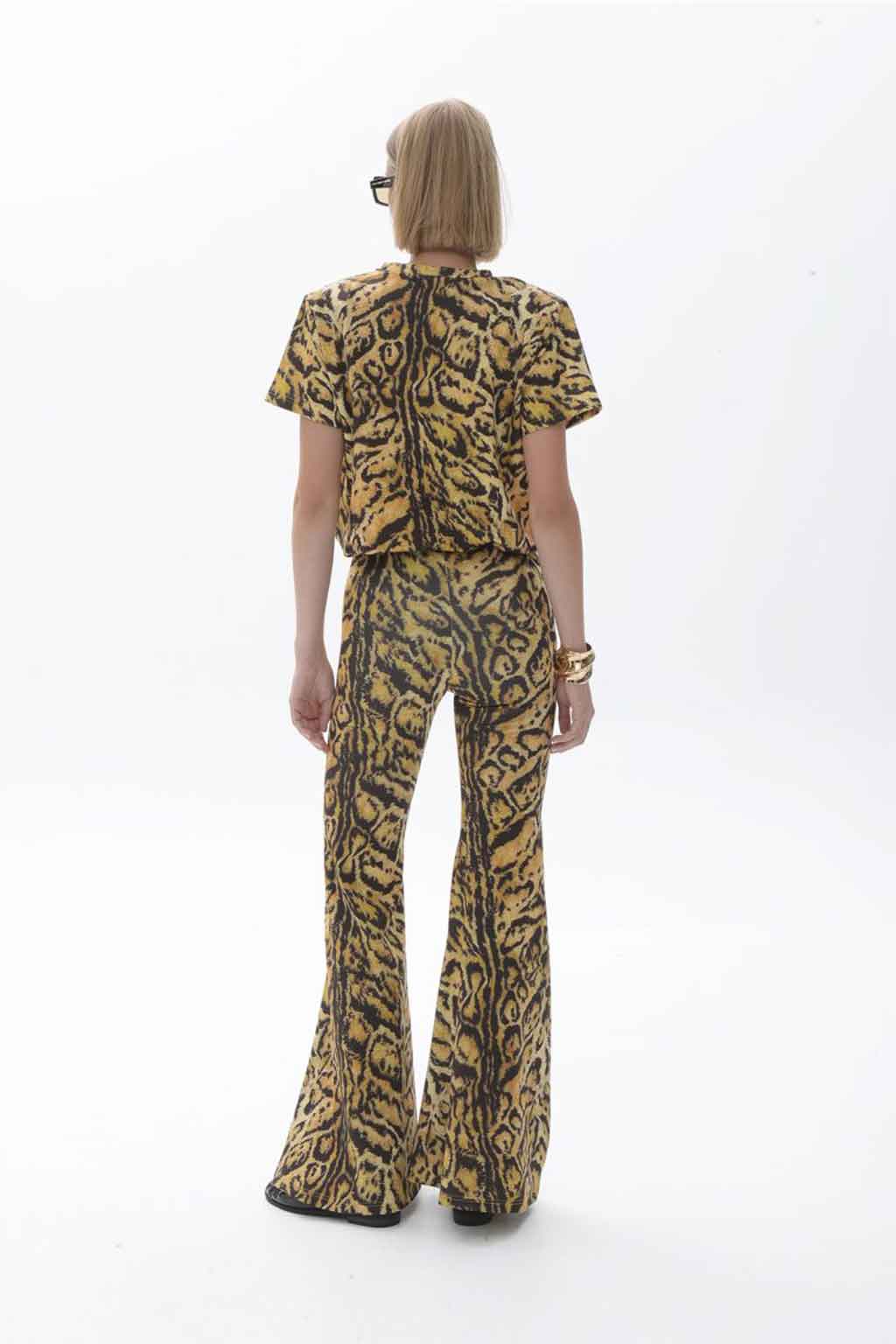 Statement παντελόνι σε φαρδιά γραμμή με τολμηρό abstract animal print — chic, άνετο και ευέλικτο στους συνδυασμούς.