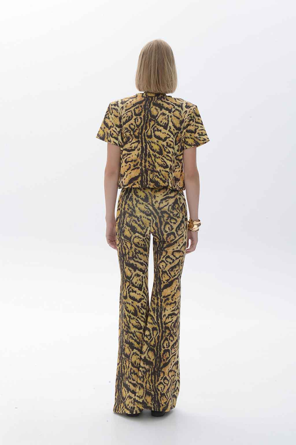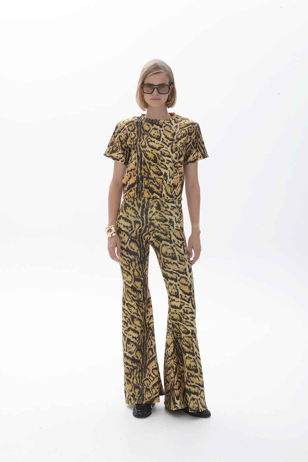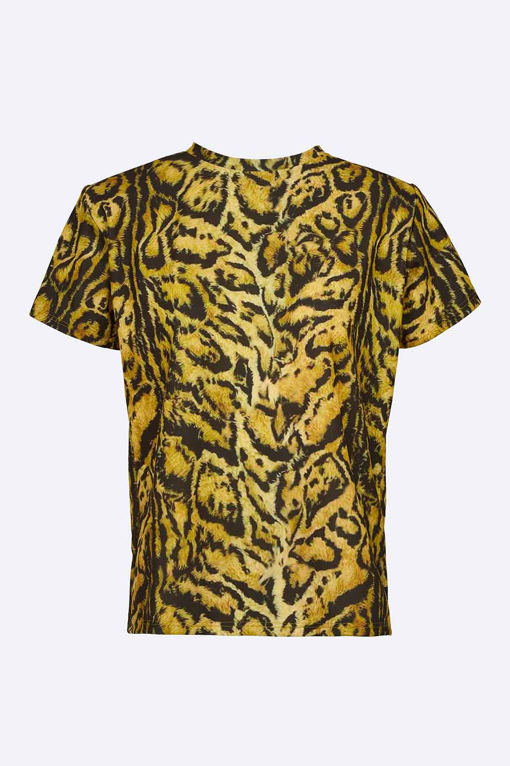 Amaya Top • Χρώμα: Golden Brown – Animal Print • Κοντό μανίκι, στρογγυλή λαιμόκοψη • Slim, εφαρμοστή γραμμή • Σύνθεση: 100% Πολυεστέρας • Φροντίδα: Χειροπλύσιμο ή στεγνό καθάρισμα.