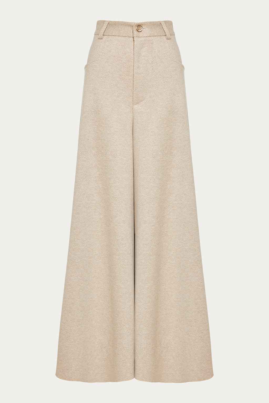 Carl pants — ψηλόμεσο παντελόνι σε ύφανση herringbone (ψαροκόκαλο) με καθαρή, tailored γραμμή για day-to-night look.