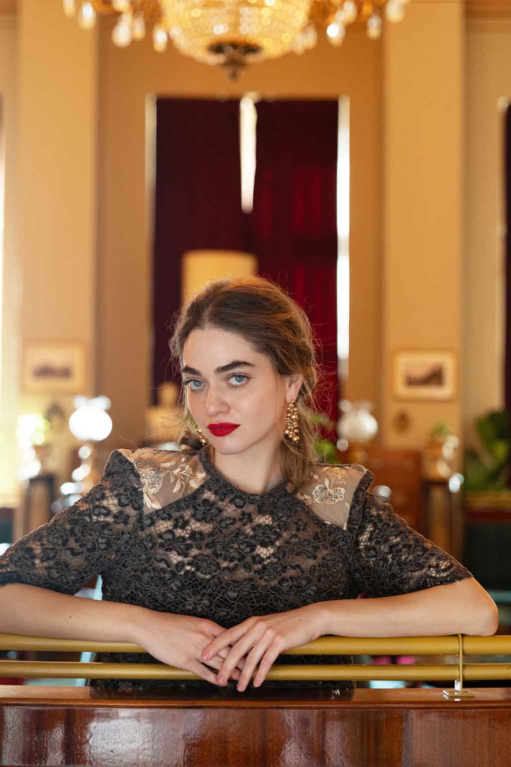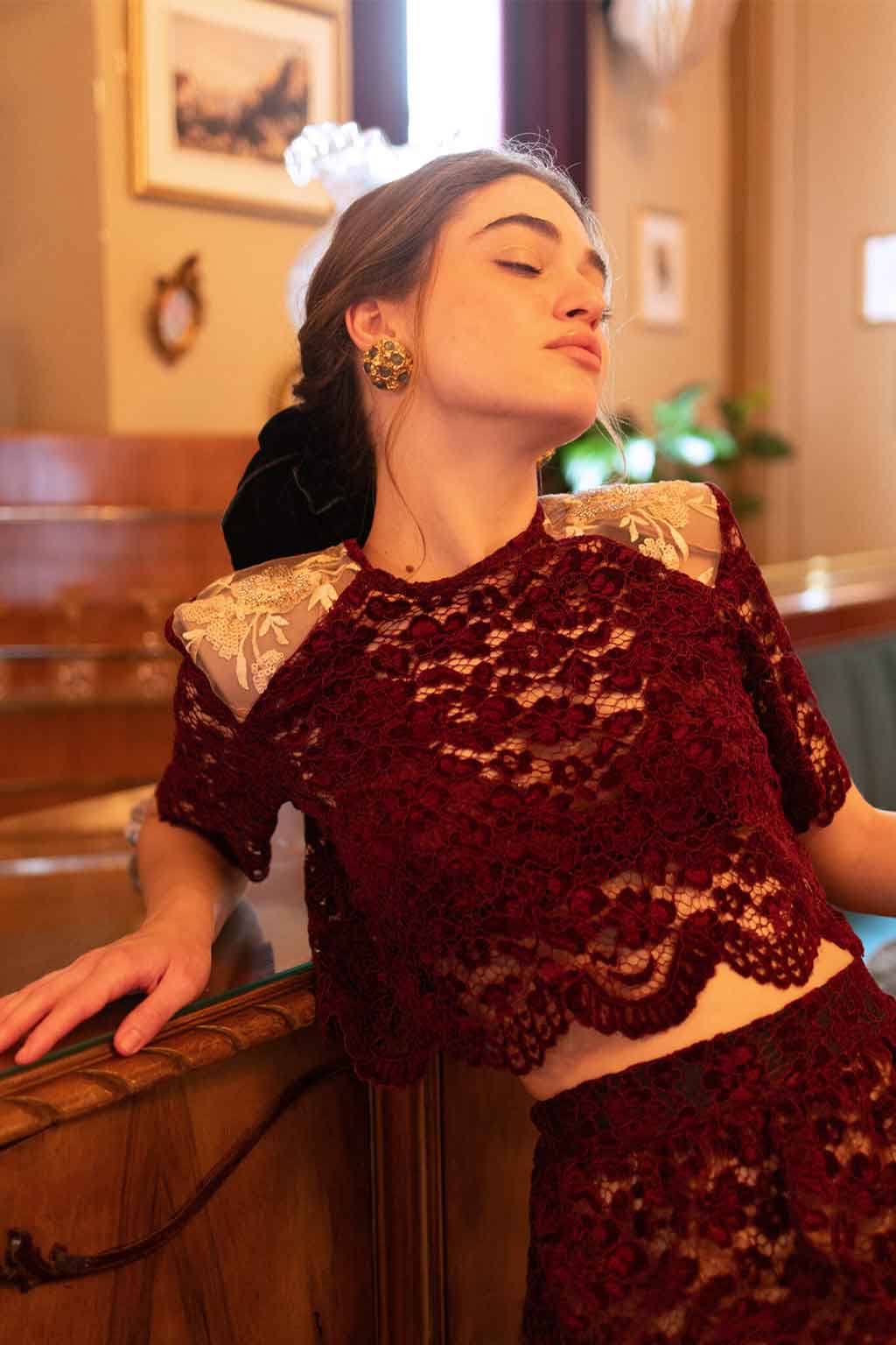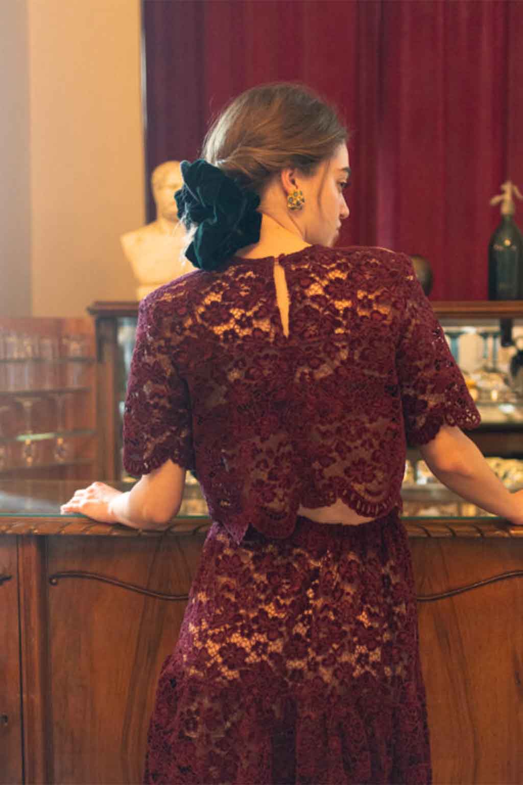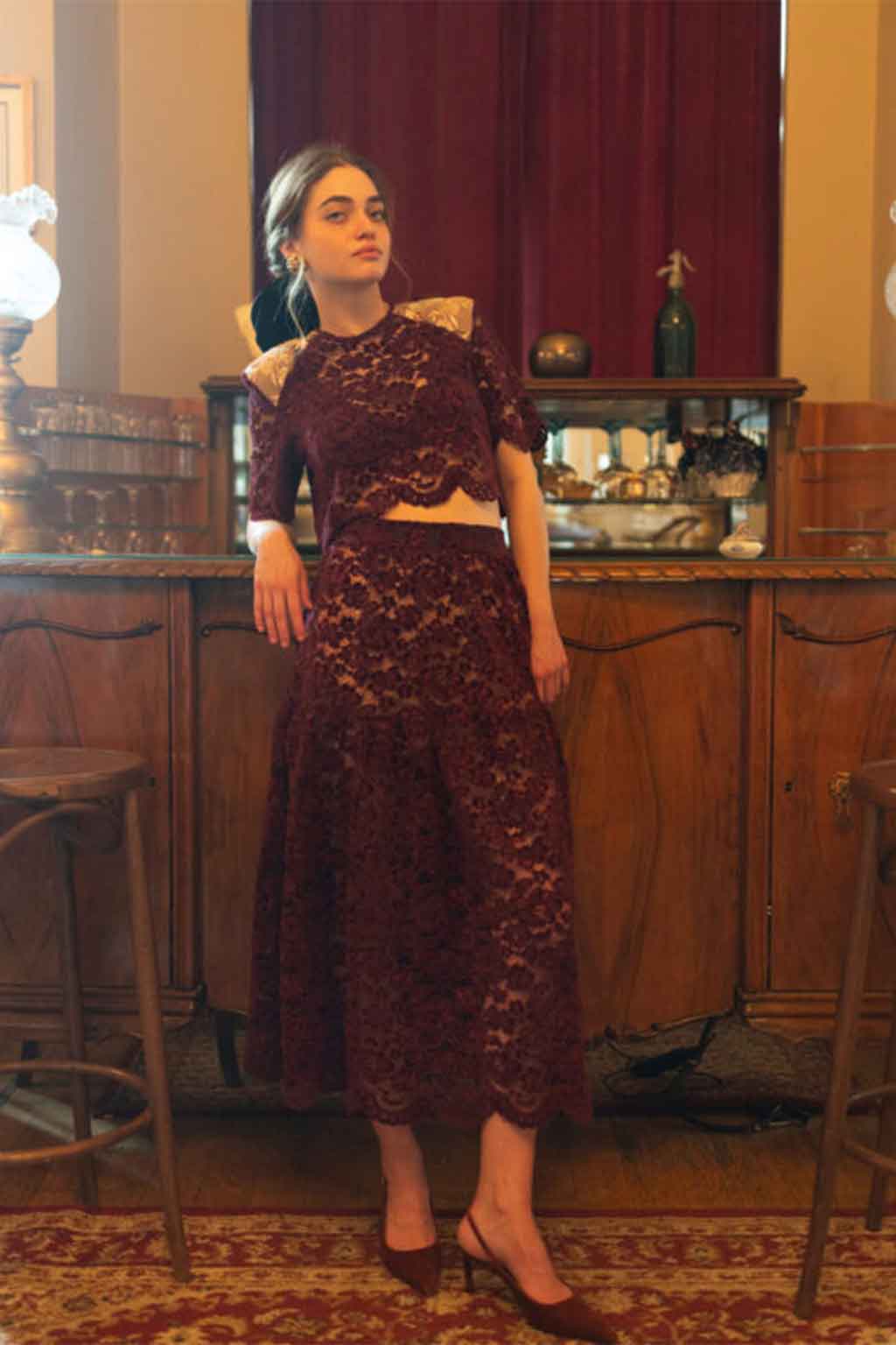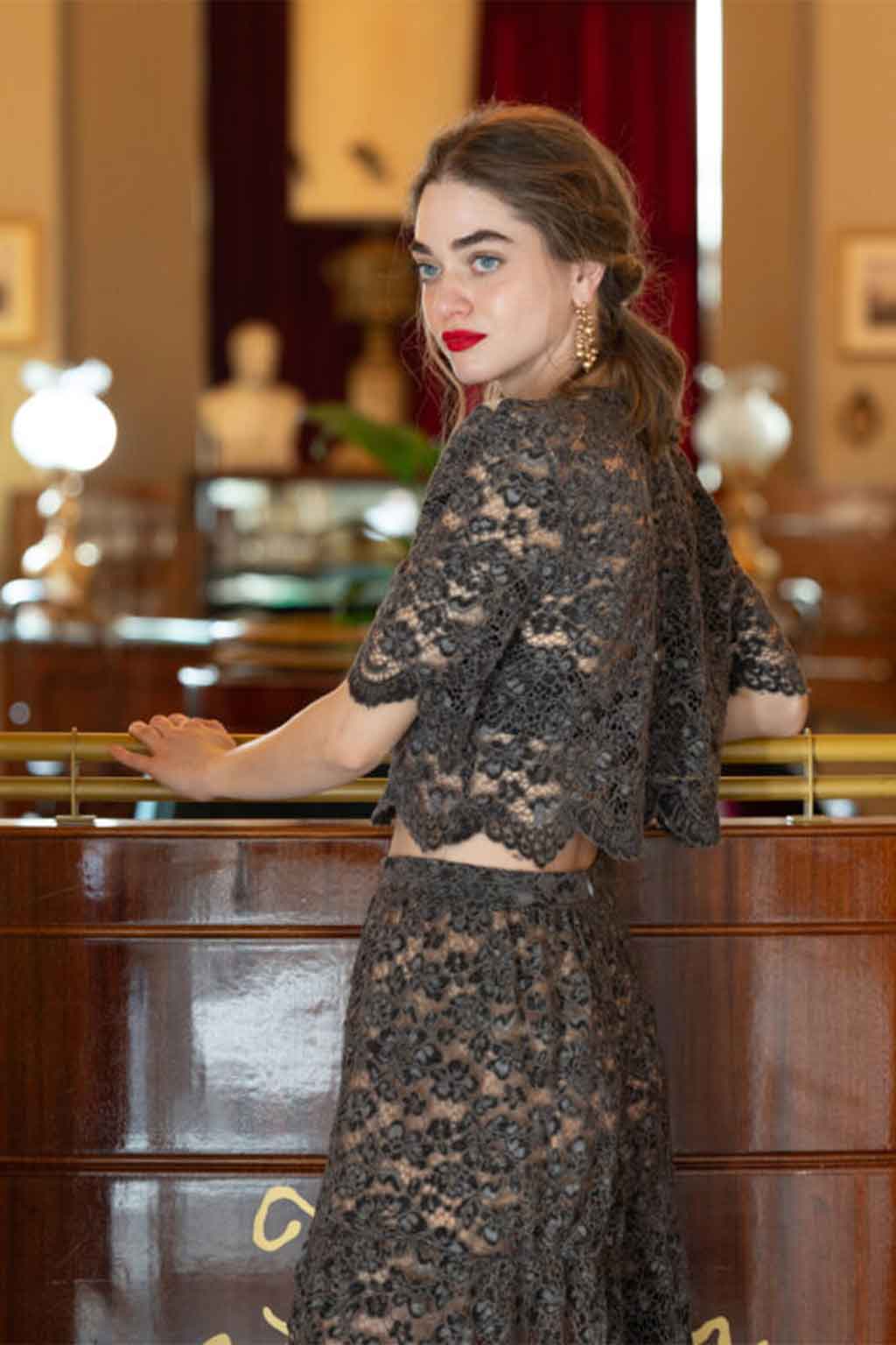 Cropped τοπ από δαντέλα με διακριτικές παγιέτες στους ώμους για λαμπερές και κομψές εμφανίσεις • Σύνθεση: 100% δαντέλα.