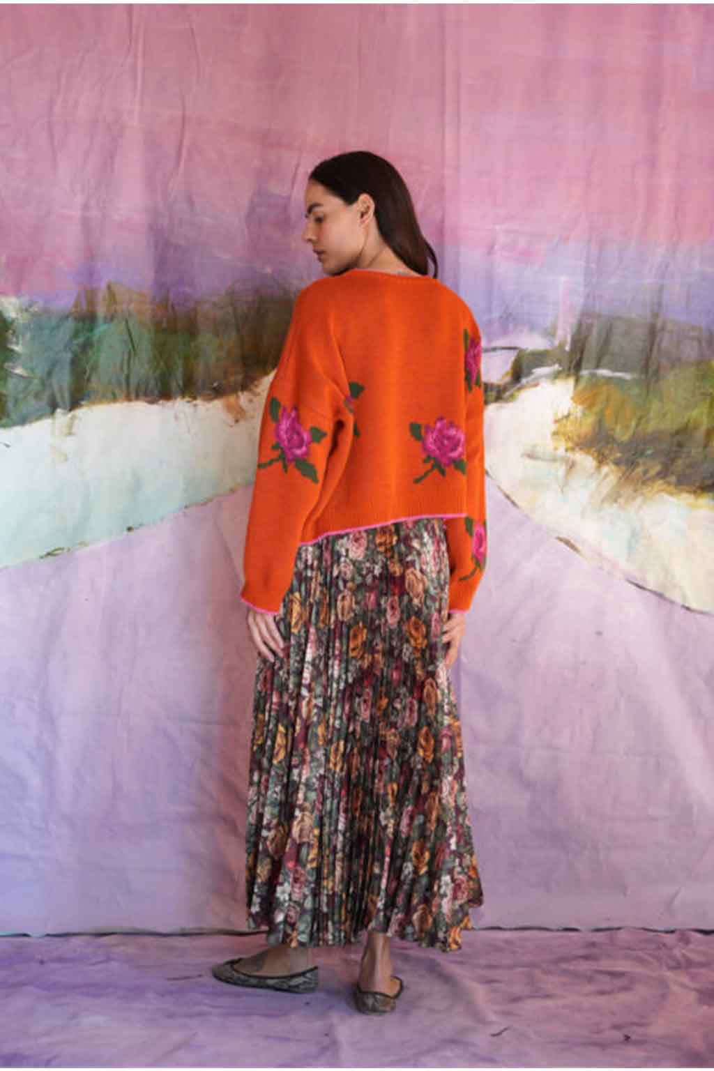 Colette skirt (burgundy) — μίντι πλισέ φούστα με λάστιχο στη μέση και αγαπημένο φλοράλ print • Σύνθεση: 100% σατέν.