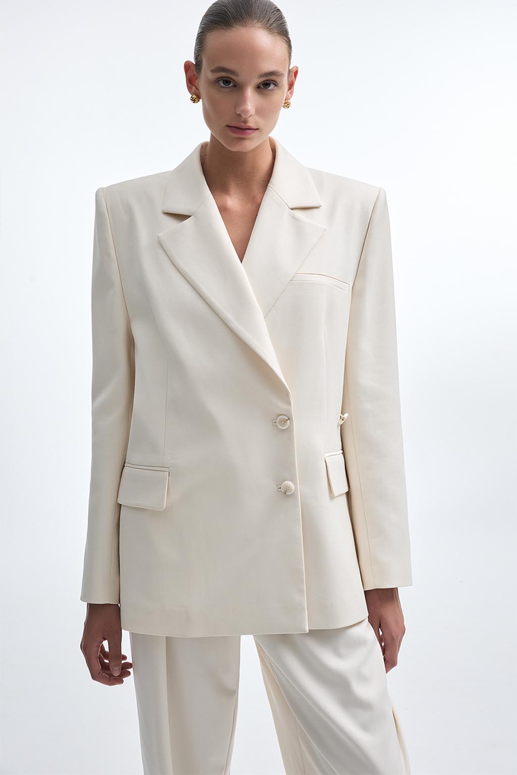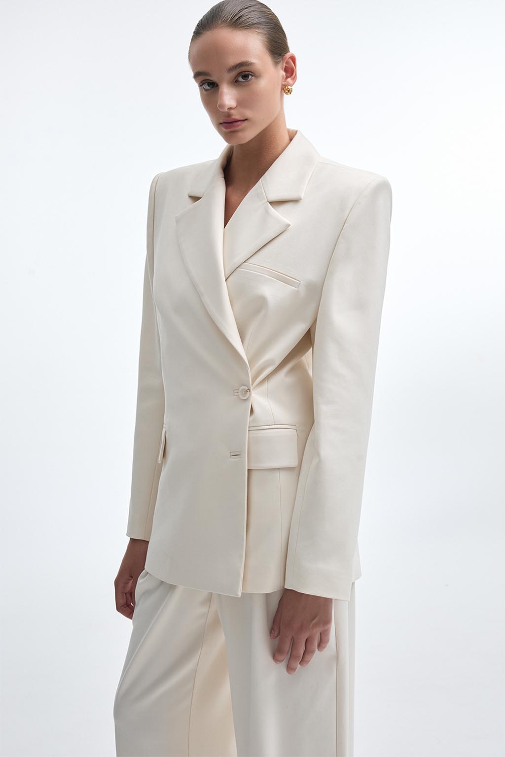 Δομημένο σακάκι με μοντέρνα προσέγγιση. Φοριέται με jeans ή tailored σύνολα, προσθέτοντας αρχιτεκτονική στη σιλουέτα. Ένα κομμάτι που δίνει χαρακτήρα σε κάθε εμφάνιση.