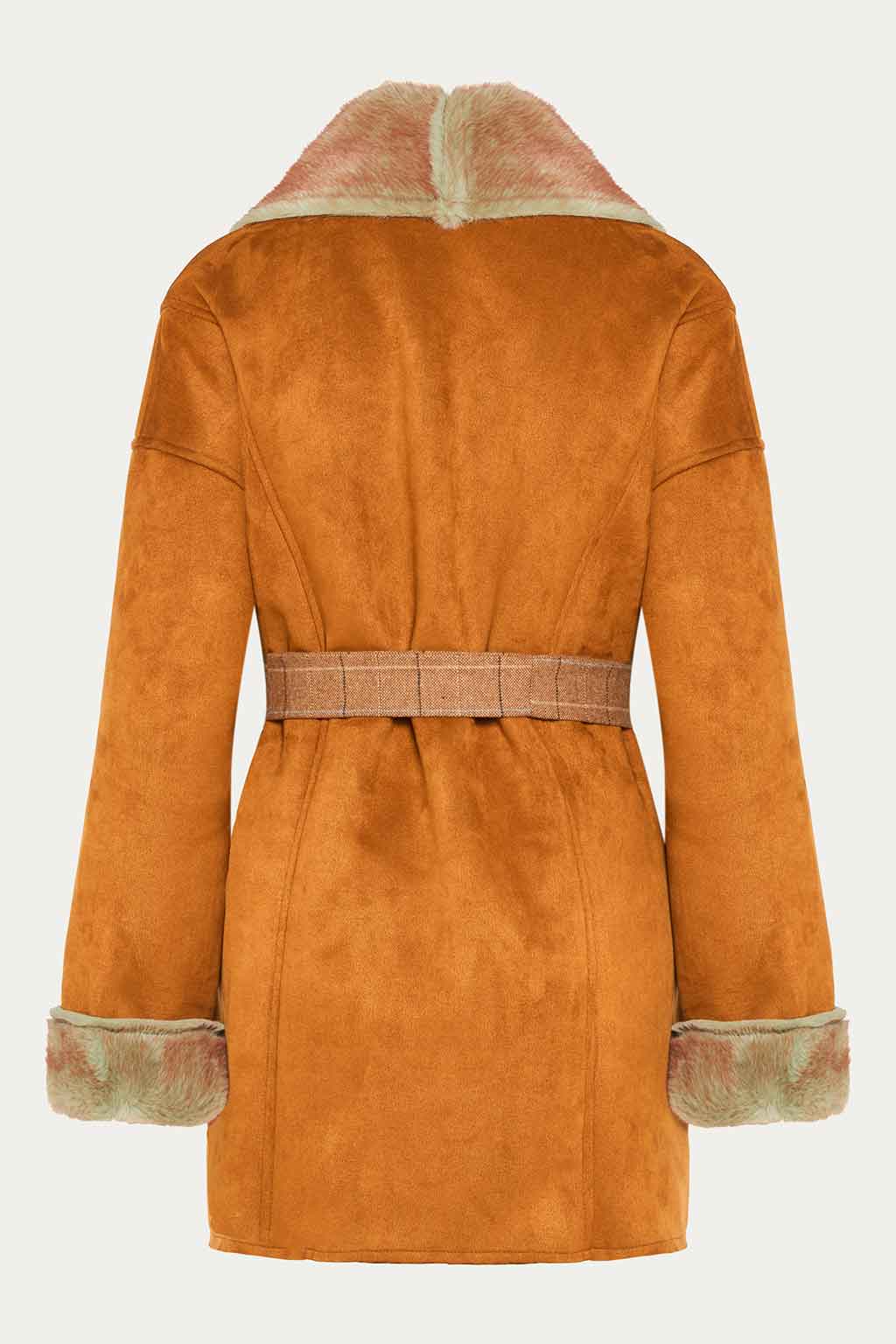Edgar coat — παλτό σε υφή σουέτ με γιακά/επένδυση από συνθετική γούνα, ζεστό και κομψό για standout χειμερινά looks.