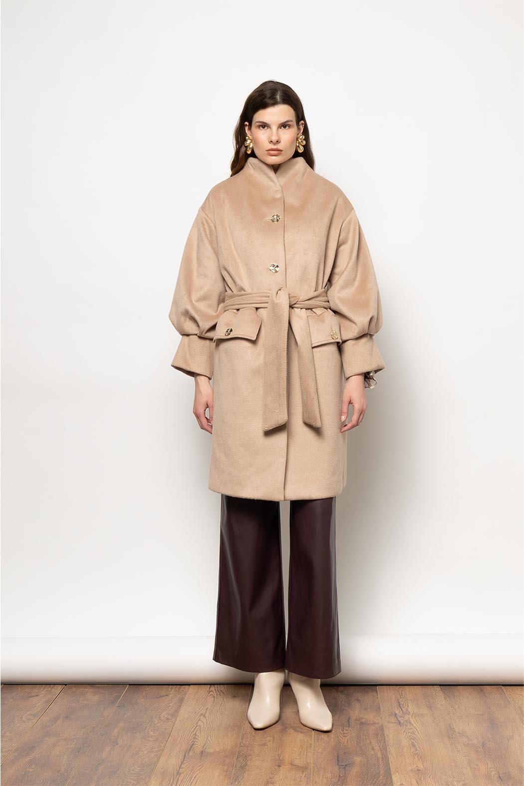 Elpie coat — κομψό παλτό με καθαρή γραμμή· ύφασμα 81% πολυεστέρας, 19% ράιον.