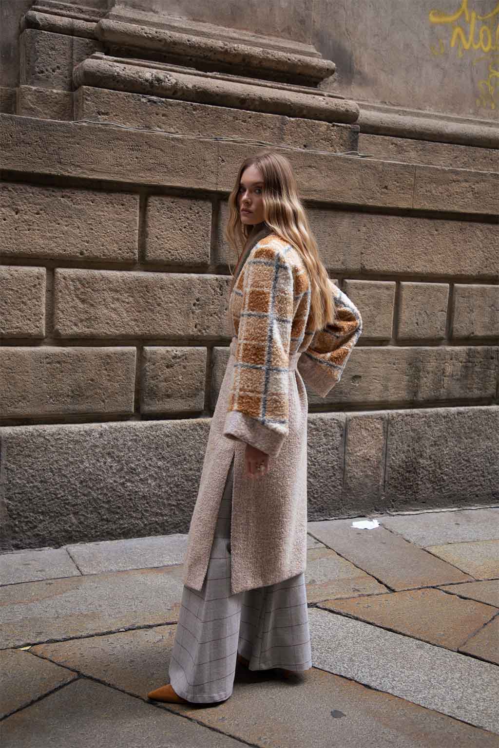 WOOL CHECKED BELTED