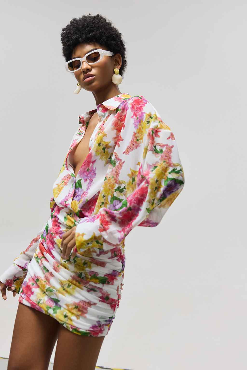 Oversized, αέρινο πουκάμισο από 100% Rec PL, με παραμυθένιο pattern σε γαλάζιες αποχρώσεις, γιακά, σούρα στην πλάτη, και μανίκια με μανσέτες.
