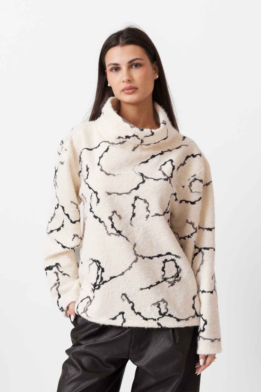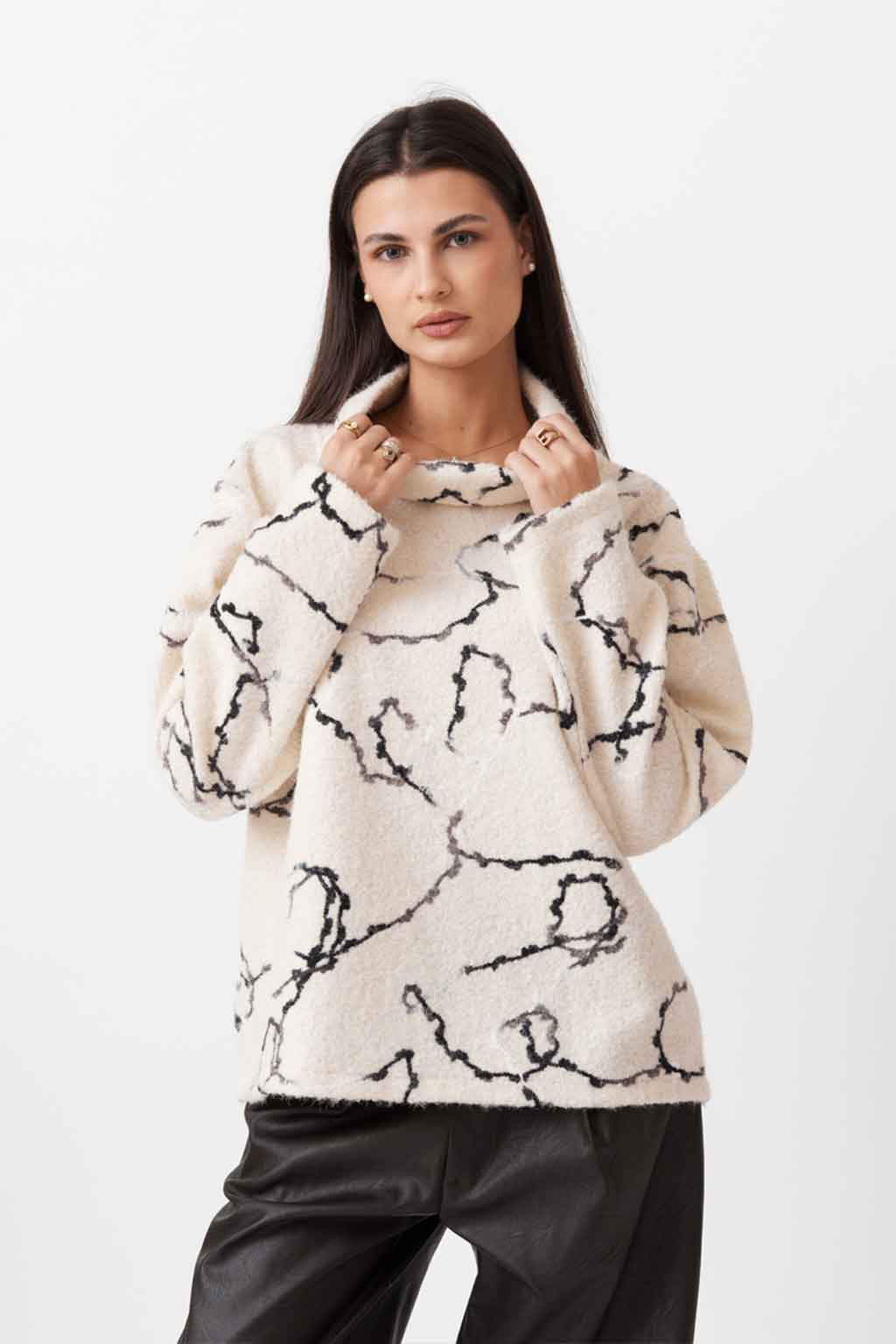 Πλεκτό τοπ με ψηλό λαιμό για καθαρή, κομψή γραμμή και ζεστή αίσθηση. Φοριέται μόνο του ή σε layers με σακάκι/ζακέτα—ιδανικό για καθημερινά και smart-casual looks από το πρωί μέχρι το βράδυ. Σύνθεση: 100% Πολυεστέρας