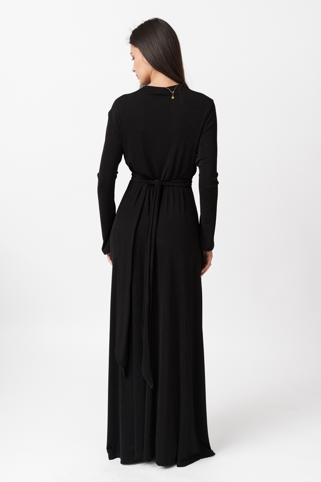 Μακρύ φόρεμα tie με ρευστή πτώση και δέσιμο που τονίζει τη μέση για κομψό, θηλυκό σχήμα. Ιδανικό για day-to-night εμφανίσεις—φοριέται με γόβες ή μπότες για polished αποτέλεσμα. Σύνθεση: 92% Πολυεστέρας (POL), 8% Ελαστάνη (SPA)