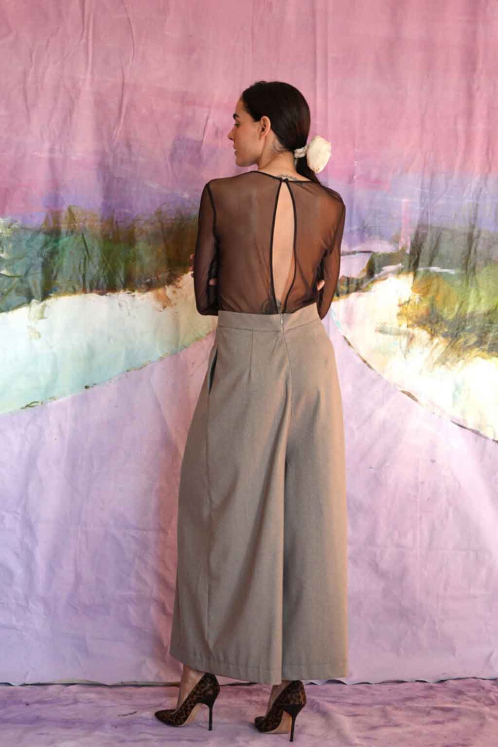Jumpsuit with closed top, pleated pants and an open tulle back.•Composition: 30% Tulle,70% Pes