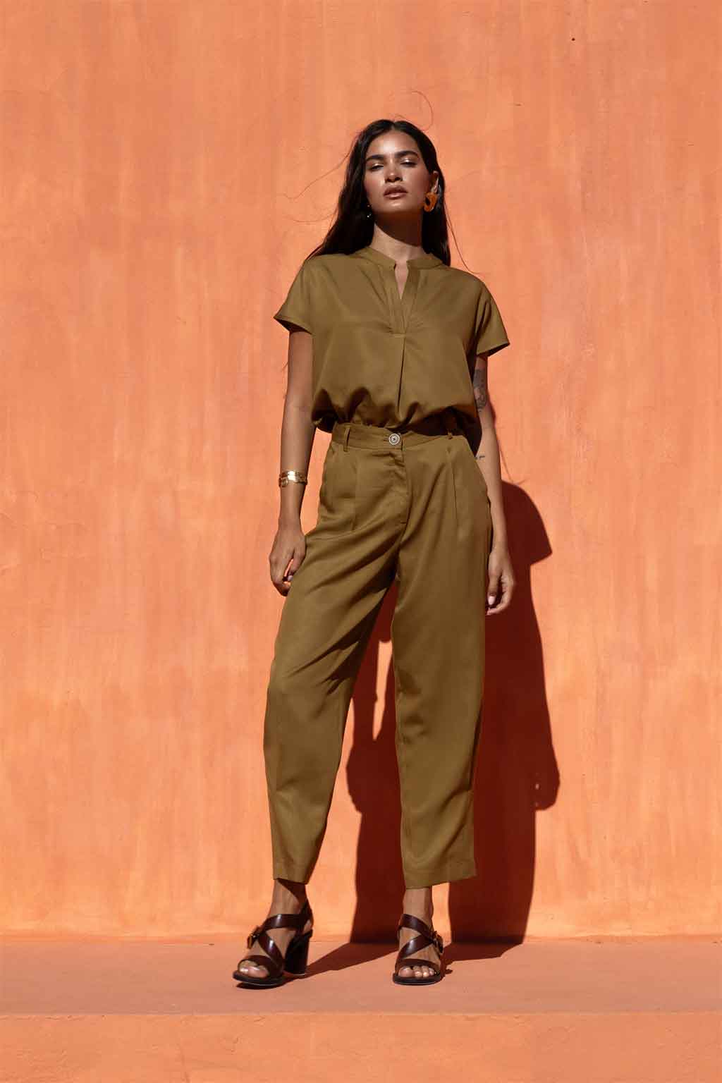 Αυτό το παντελόνι από 100% Lyocell προσφέρει μια μοναδική κίνηση και μεταξένια υφή, αγκαλιάζοντας το σώμα με απόλυτη κομψότητα.