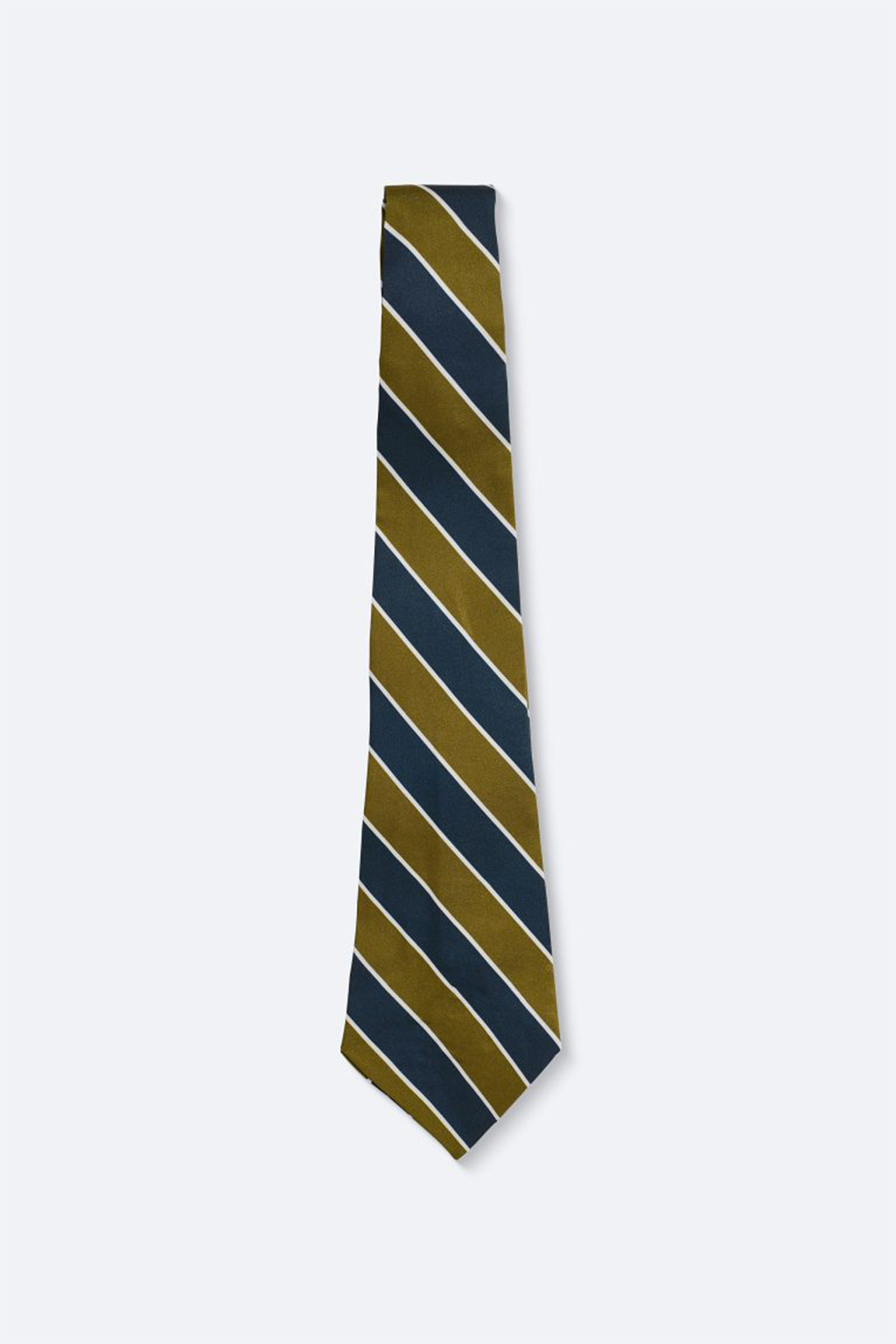 Ριγέ γραβάτα σε βαθιές ώχρες αποχρώσεις — εκλεπτυσμένη, sharp και ουδέτερου φύλου.