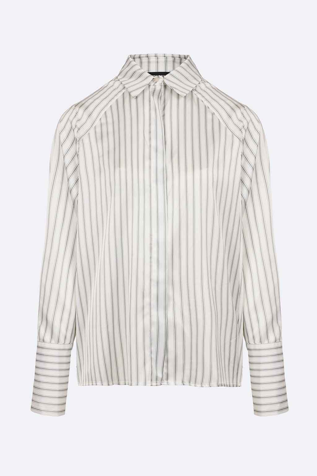 Opal Shirt • Χρώμα: Λευκό με μαύρες ρίγες • Κούμπωμα μπροστά • Μακριά μανίκια • Σύνθεση: 100% Πολυεστέρας • Φροντίδα: Πλύσιμο κρύο, στέγνωμα επίπεδα, σιδέρωμα χαμηλά, χωρίς χλώριο.