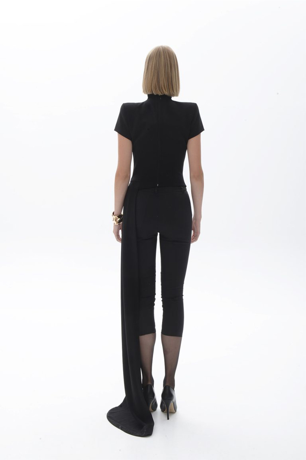 Ψηλόμεσο μαύρο capri παντελόνι με καθαρές γραμμές και διακριτικό άνοιγμα στο τελείωμα. Η tailored σιλουέτα του ταιριάζει άψογα με sharp tops και ψηλοτάκουνα ή σε layering κάτω από μακριά παλτό για elevated day-to-night look.
