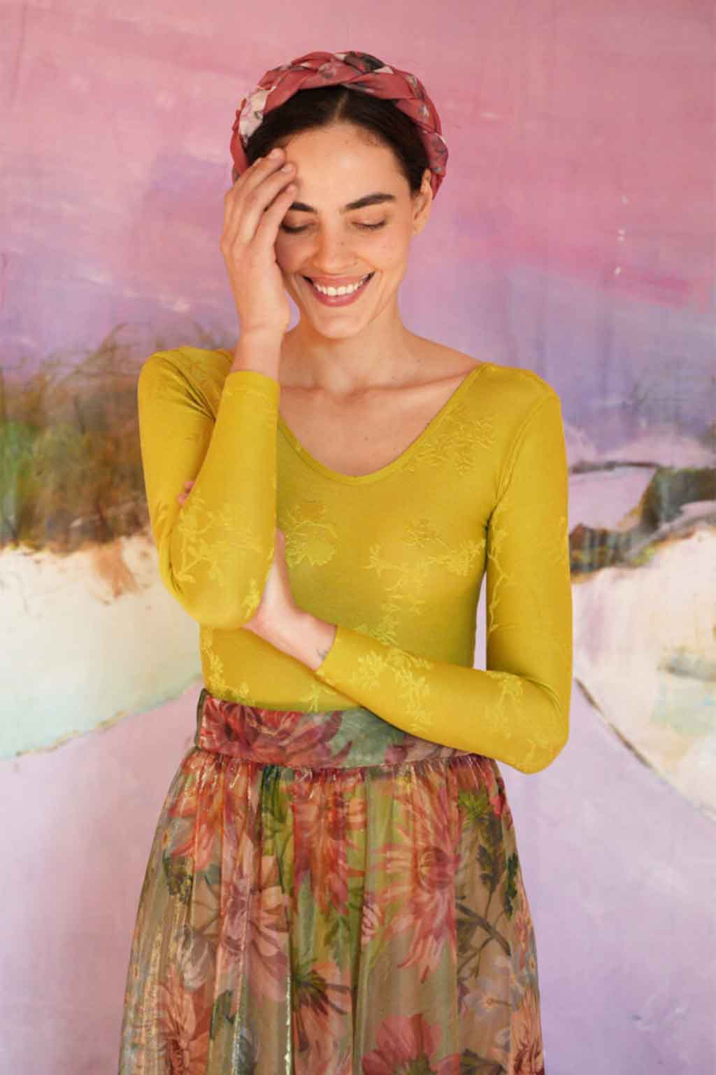 Maxi φούστα με floral print που συνδυάζεται ιδανικά με τα Chara bodies, από 100% τούλι.