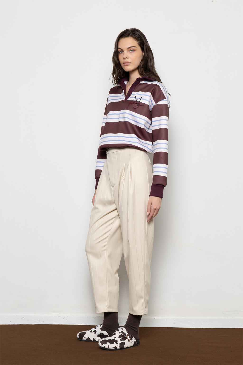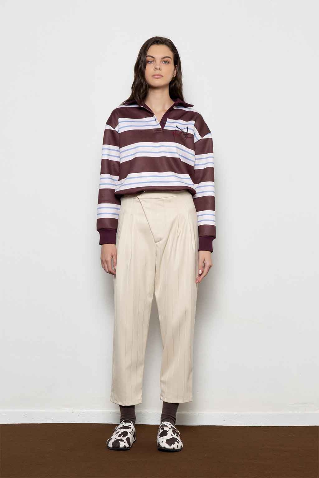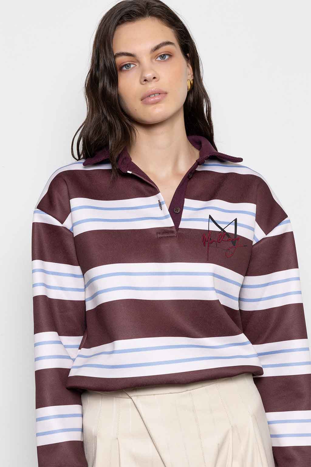 Φούτερ σε έντονη κόκκινη και κρεμ παλέτα με απαλή δομή και κρυστάλλινο λογότυπο που θυμίζει Marlboro — το statement κομμάτι που δεν ήξερες ότι χρειαζόσουν. Ύφασμα: 60% Βαμβάκι, 31% Πολυεστέρας, 3% Λύκρα & 49% Μπαμπού, 48% Βαμβάκι, 3% Ελαστάνη. Το μοντέλο φοράει μέγεθος S.