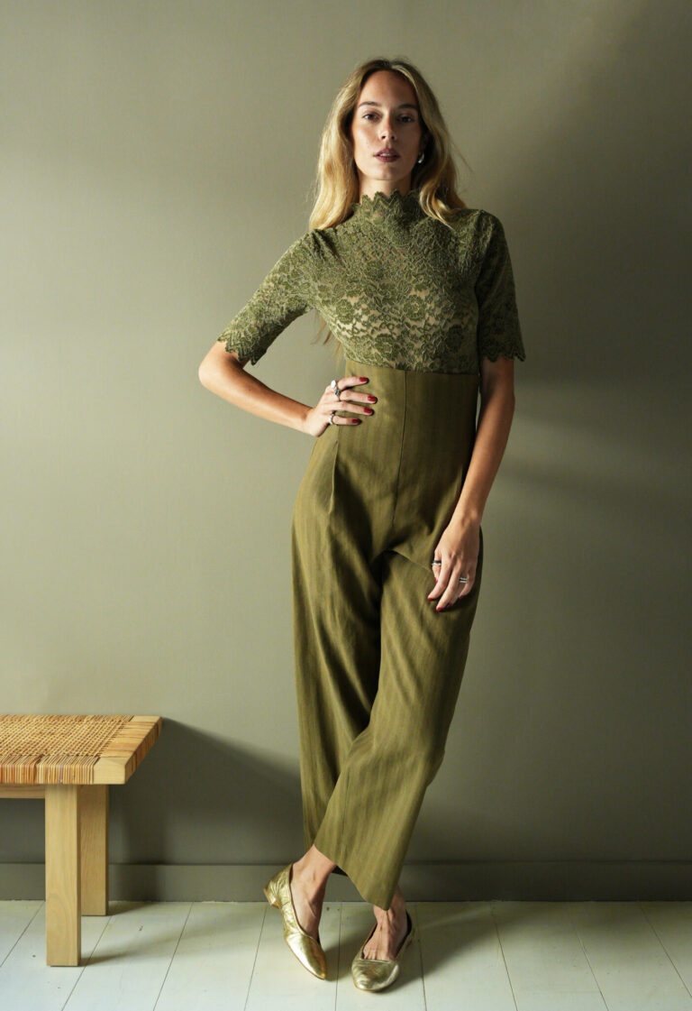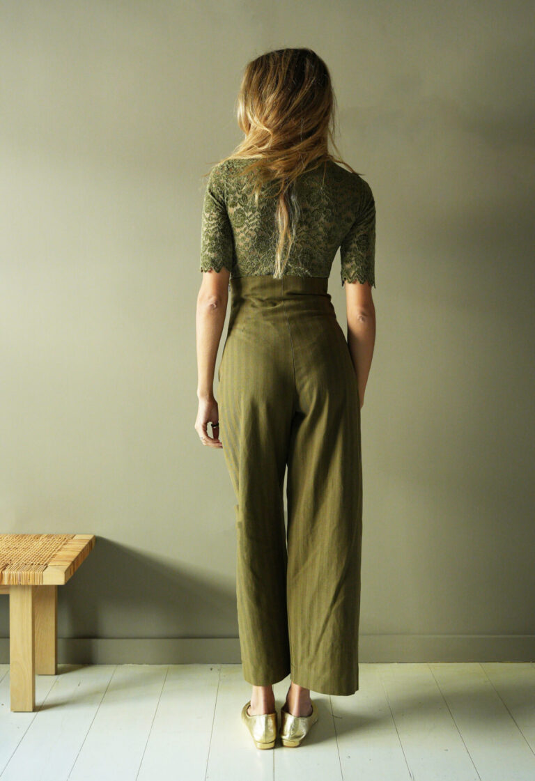 Zoey πράσινο ψηλόμεσο παντελόνι από lyocell–cotton, με καθαρή γραμμή και άνετη εφαρμογή.